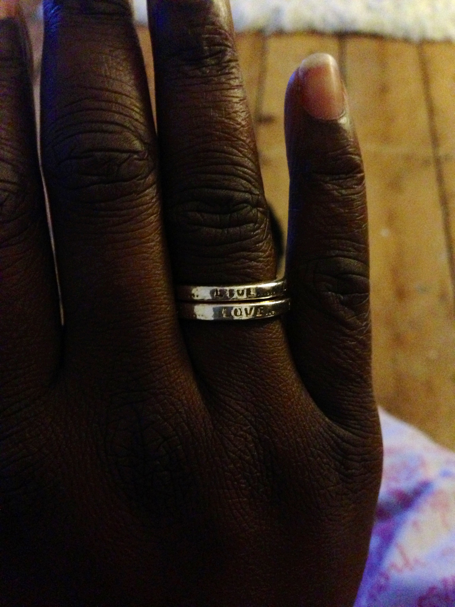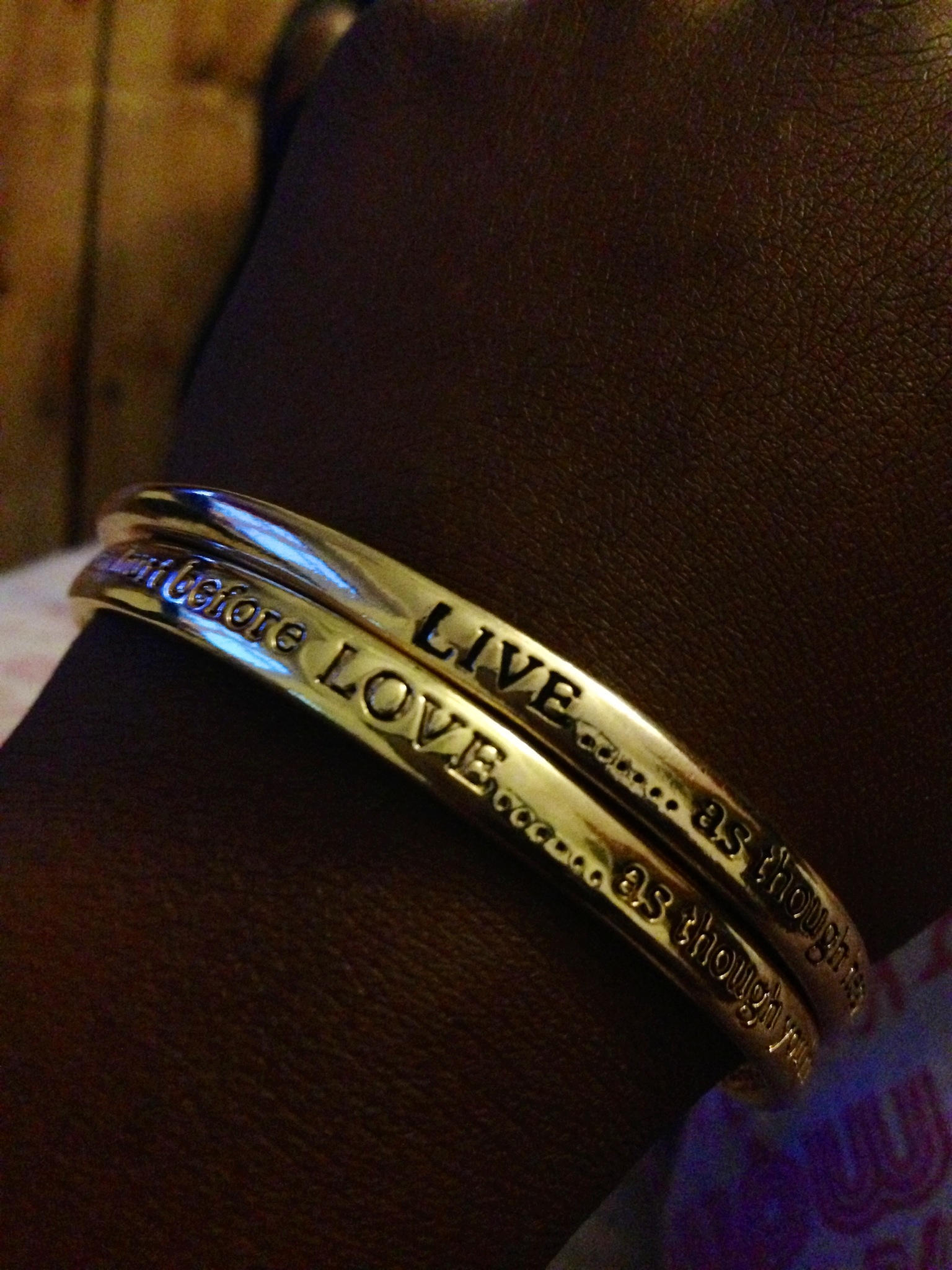 the bracelets jingle all the time, so Aaron is always on my mind and the rings catch the sunlight as I type at my desk. It may be odd to some that constantly being reminded of my loved one is comforting, but it is has brought me such solace, knowing that I don’t have to be concerned about having a moment of emotional distress, if I hear a song, or a see something that he would love or wear one of his tee-shirts because the jingle jangle keeps him near all the time.