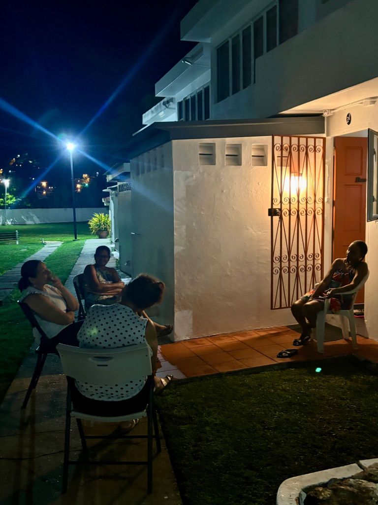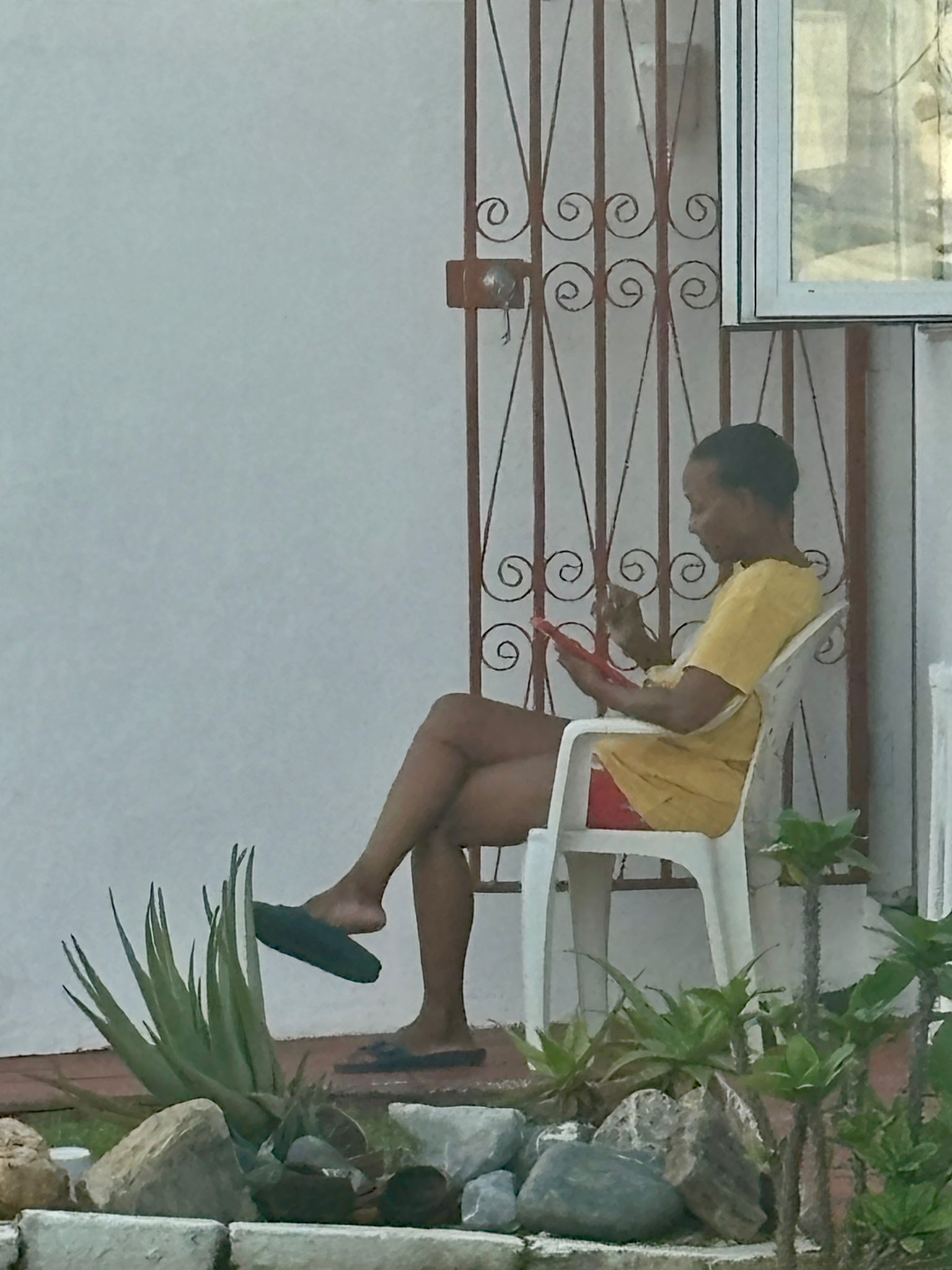 But I do just love when I drive in the yard and she is there reading her book by the door. She is the one to beckon the other ladies in the yard to come and lime for the night. This bench lime is serious business, I see cake, doughnuts, pholourie, chatigne – all kinda ting pass.